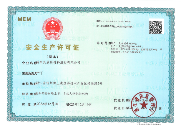 紹興興欣新材料股份有限公司成立于2002年06月27日,占地面積122畝,位于杭州灣上虞經(jīng)濟(jì)技術(shù)開發(fā)區(qū)拓展路2號,現(xiàn)有職工200余人,專業(yè)技術(shù)人員50余人;博士、碩士研究生30余人組成的一支知識型、專業(yè)化的技術(shù)科研團(tuán)隊(duì)。公司面向全球市場,專業(yè)開發(fā)電子化學(xué)品、環(huán)保化學(xué)品、醫(yī)藥中間體、高分子材料等先進(jìn)新材料重點(diǎn)領(lǐng)域的省級科技型企業(yè);建有浙江上虞、安徽東至兩個生產(chǎn)基地。目前為“國家高新技術(shù)企業(yè)”、浙江省“隱形冠軍”企業(yè)、浙江省專精特新中小企業(yè);建有“省級”研究開發(fā)中心,共建天津大學(xué)浙江紹興研究院電子化學(xué)品研發(fā)中心。